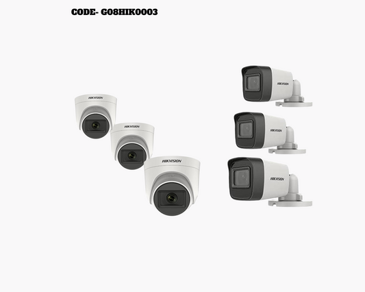 HIKVISION 5MP CCTV CAMERA KIT 4 CHANNEL DVR 3 DOME 3 BULLET CAMERAS WITH AUDIO MIC FULL COMBO KIT CODE:- G04HIK0003