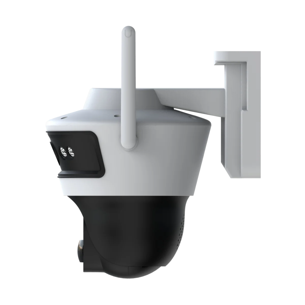 - PT camera pans 266° horizontally and tilts 90° vertically.
